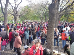 The most amazing group of all are in a large paved square. Adults in their 50’s and 60’s sit on small chairs with a piece of paper in front of them detailing the vital statistics of their 20 and 30 something year old children. The details include height, weight, personality traits and career/ study background. Other parents browse along the hundreds of A4 prospectives and will try to arrange a suitable match for their own children from the options on display. Trying to walk through this area is like trying squeeze through any Australian mall at 4:30pm on Christmas Eve.